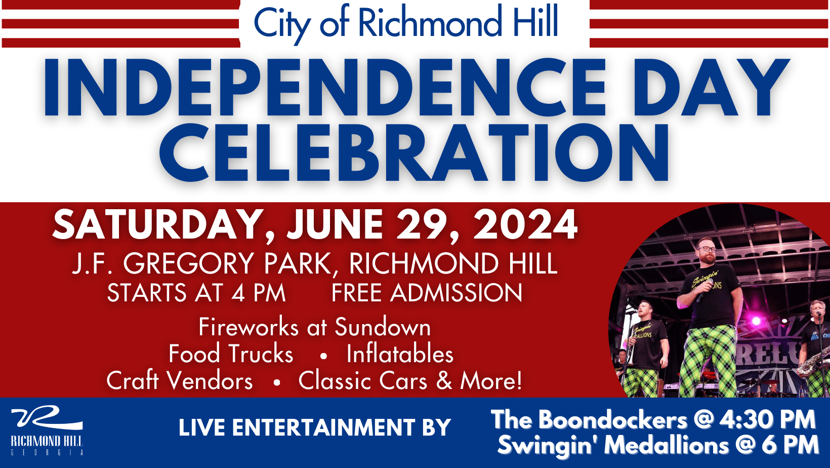 Join us for our annual Independence Day Celebration at J.F. Gregory Park on June 29, 2024!