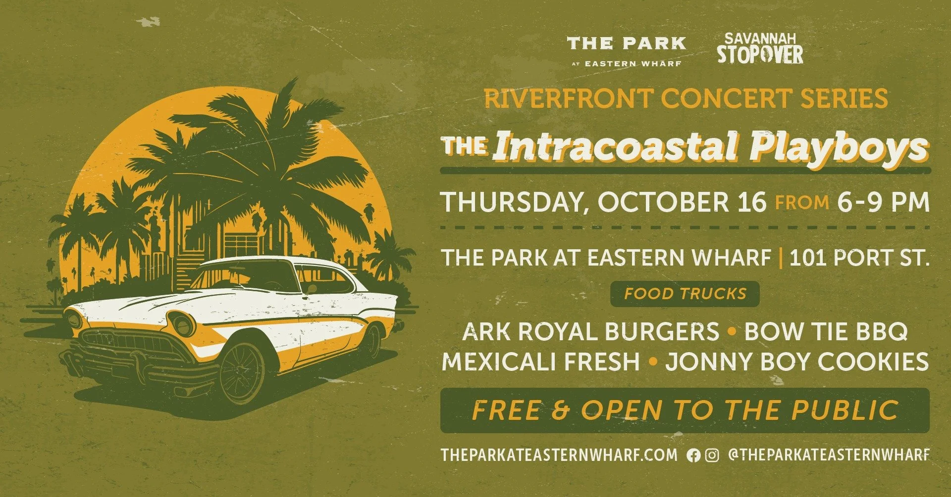 Savannah Stopover Music Festival and The Park at Eastern Wharf are teaming up for the monthly Riverfront Concert Series! Join us on Thursday, October 16th from 6-9 p.m. featuring Savannah's The Intracoastal Playboys.