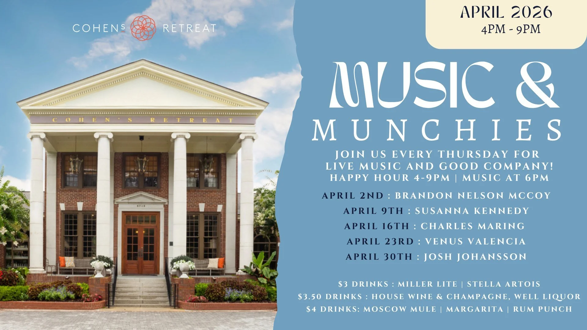 Grab your friends, sip something delicious, and make Cohen’s Retreat your Thursday night spot. We can’t wait to see you here!